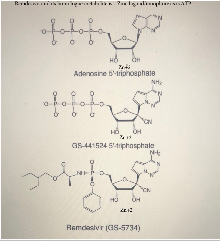 Molnupiravir is similar in organic structure and biochemical action to Remdesivir and Adenosine which are both zinc ligand/ ionophore drugs.